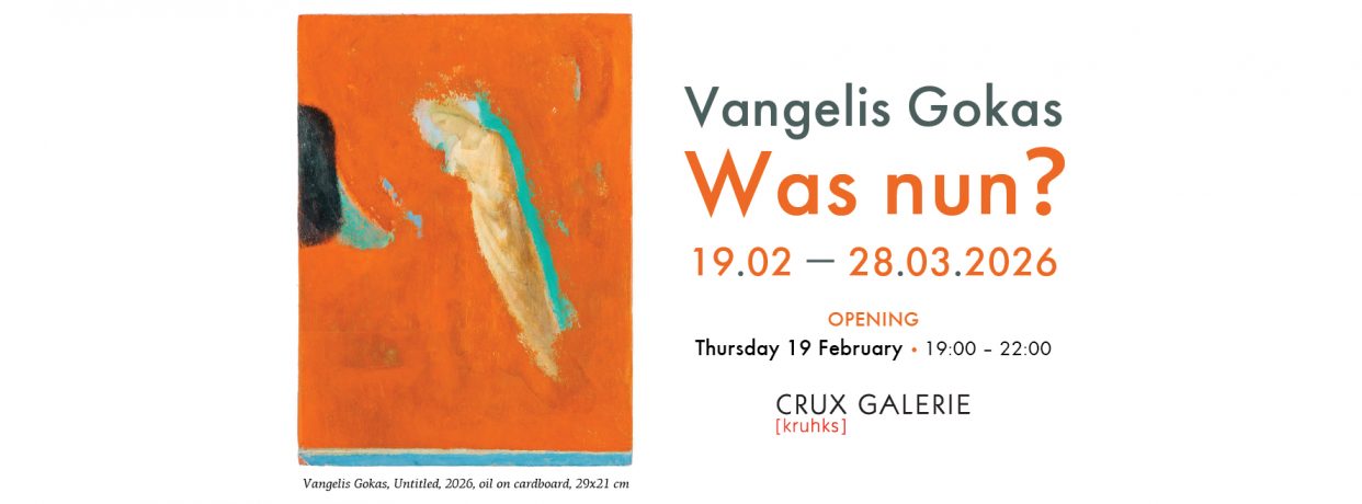 Crux Galerie presents the solo exhibition of Vangelis Gokas, titled Was nun? (And now what?). Vangelis Gokas’s painting unfolds at the threshold between gesture and silence, between the visible and the suggestive. The question posed by the title functions as an existential pause and an opening toward doubt, fragility, and trust in the painting process. Was nun? does not seek resolution. Ιt suspends certainty and shifts both the act of painting and the act of viewing toward an ongoing process of waiting.